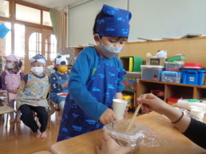 きりん組🦒になり、初めての味噌汁作りをしました。