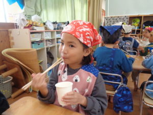 「おかわりしたいね~」「かつお節最高❣❣」「あったかいと美味しい~」ときりん組🦒みんなで美味しく頂きました😊