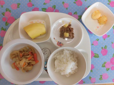 今日の給食は柔らかく戻した切り干し大根の炒め煮でした。