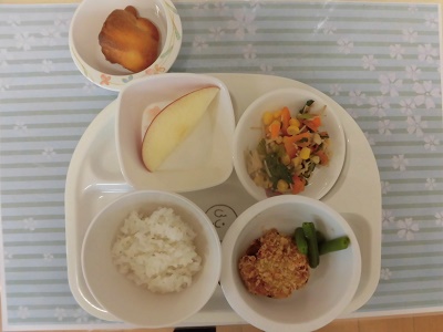 今日の給食は畑登園の日にきりん組さん達が掘ってきてくれた立派なじゃが芋でコロッケを作りました。