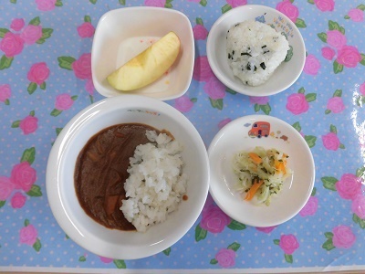 今日は皆大好きハヤシ汁しめじ、人参、玉葱!
