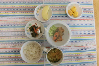今日の給食は、鮭のホイル焼きでした。キノコの甘みもあり美味しかったですね。