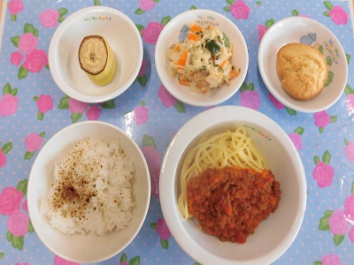 給食は、ミートスパゲッティ!