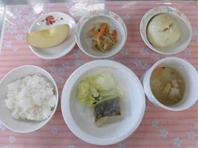 おやつは、肉まんこちらも大人気の一品で完食してくれました。(^^♪