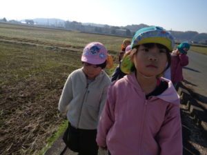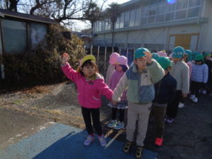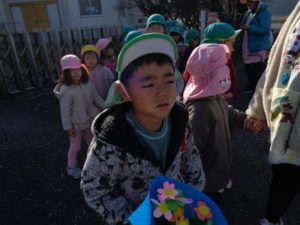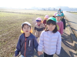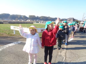 くま組🐻・きりん組🦒さんで、神楽を教えてくれた井上さんのお家まで歩いて行きました。