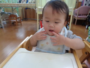 おやつを食べる時の子ども達は、とっても機嫌よく嬉しそうにしています。