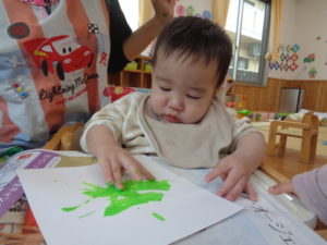中には、筆を持つよりも手で書く事を好み、手で絵の具を広げていきました。