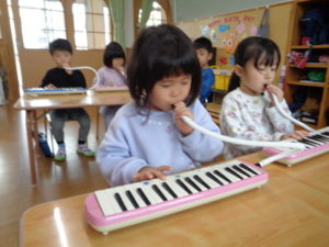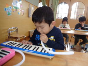 「メロディオンの歌」「ゆかいなまきば」の練習をし、正しい姿勢で取り組むことが出来ていた子ども達でした。