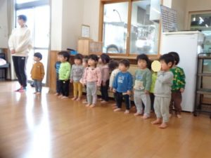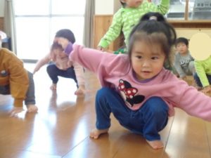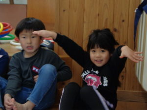 年長児の姿を見て、りす組🐿さんは上手に真似していました。