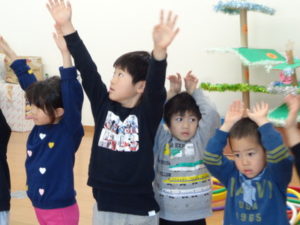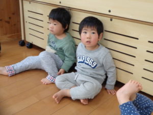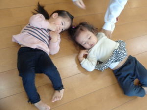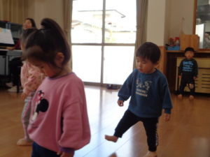 年長児と1歳児で体格は違いますが、とっても上手にリズムをとる1歳児さんでした。