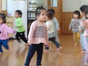 歩く・走る・スキップ・三拍子さどリズムに合わせて、ピアノ🎹の音をしっかり聞いて、身体を動かす事が出来ました。