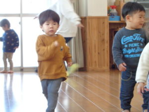きりん組🦒は、その後外に出て、縄跳び・凧揚げなど戸外活動を楽しみました。