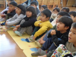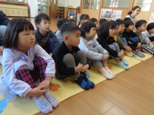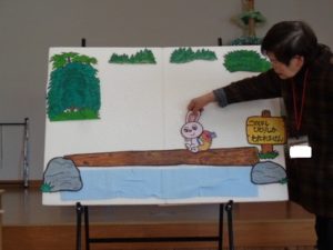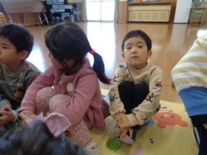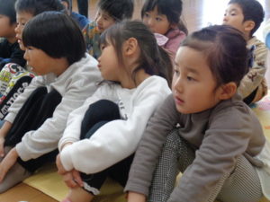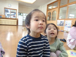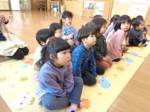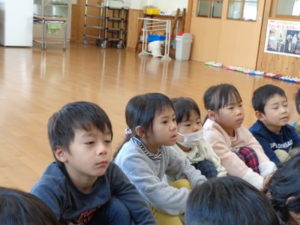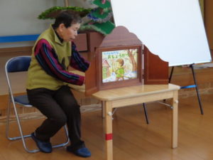 今日は、熊日童話会📚より2名の方に御来園頂き、ぱんだ組🐼・くま組🐻の子ども達に、パネルシアターや絵本の読み聞かせ、紙芝居などのお話をして頂きました。