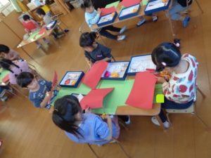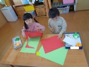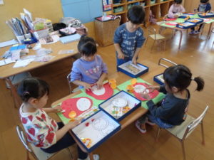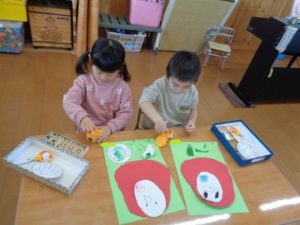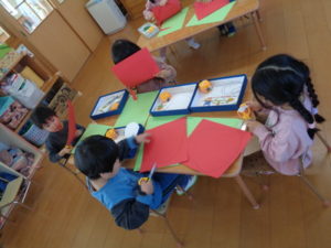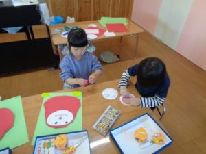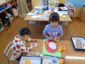 今日は、1月の製作として「だるま」を作りました。