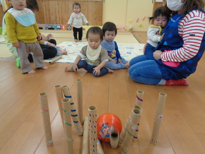 その後は、ボーリングのピンにして、転がすのを楽しみました。