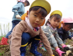 バナナグループは、菅原神社に行きました。神社に着くと、たけのこがお出迎えしてくれ、子ども達は大はしゃぎ♪「土のにおいしかしないね」と、何度も匂いを嗅いでいました。