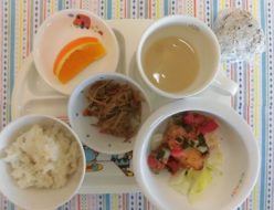 今日は、いい天気になりましたね。給食は、ミートスパゲッティでした。トマト缶を煮詰めてケチャップやコンソメで味を調えました。おやつは、ジャムパン❣❣🦒さんリクエストメニューでした。