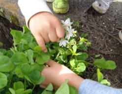 菅原神社へ、お散歩に行きました。途中、畑のレンゲ草や、タンポポ、クローバー🍀等の草花を摘んだりしました。桜🌸の花も満開で、みんなで眺めながら歩いて行きました。菅原神社では、1人の子が言い出して、鬼ごっこが始まりました。ある子は、枝を集めて積み上げて遊んでいました。