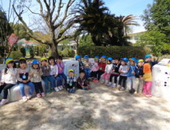 とても天気が良かったので、隣の小学校まで歩いてお散歩に出掛けました。横断歩道の渡り方など、再確認しながら楽しく散歩が出来ました。小学校では、鉄棒やタイヤ跳びをして楽しんだ後、うさぎ組🐇は『宝探しゲーム』をしました。