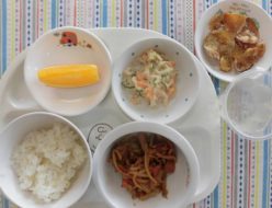 昨日の手作りお弁当ありがとうございました。とてもかわいいお弁当がいっぱい見れました!子ども達もとても喜んでいました🎶今日の給食は、焼きそばでした。みんなもりもり食べてくれておかわりもしていましたよ😊おやつは、梅ゼリーと芋チップでした。