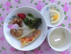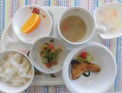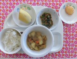 今朝は寒かったですが、日中は日差しが出て暖かくなりましたね。給食は、魚の照り煮でした。今日の魚は鰤で、脂がのっていて美味しかったですよ!おやつは、フルーツヨーグルトでした。