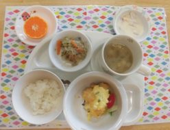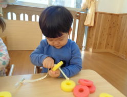今日は、天気も良く子供達もお外で楽しそうに遊んでました☆今日のおやつは、おからを使ったおやつでした。ドーナツみたいで子供達に人気でたくさん食べてくれました♬。