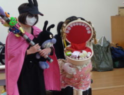 今日は、菊池市健康推進課より、歯科衛生士の方が4名来園され、「良い歯の教室」で、歯磨き指導、生活習慣、等のお話をされました。がんこちゃん人形を使ってのお話では、歯磨きの大切さを話され、子ども達も、歯磨きしないと虫歯になる事を学んだようです。
