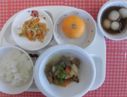 週末は、お天気悪くなりそうですね。給食は、筑前煮でした。里芋、人参、蓮根などいろいろな野菜をかつおだしや醤油で煮込みました!今日は、鏡開きなのでおやつは、ぜんざいでした。ちょっと苦手な子もいたようでした。