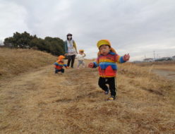 今日は、園周辺をお散歩しました。靴を履いて歩くのが上手になった子ども達は、実際に道を歩く事に挑戦してみました❣❣しっかり足👣をあげて、一生懸命歩く姿にとても成長を感じました🥰河川敷に寄り道して、坂道を「よーいドン」の合図でバランスを取りながら保育者の元へ。