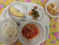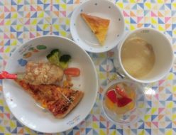 今朝もとても寒かったですね。今年最後の給食は、野菜たっぷりスパニッシュオムレツ❣❣おかわりして食べてくれる子もいましたよ!おやつは、お菓子といただいたプリンでした。