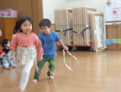 ランチルームで、初めてのしっぽ取りゲームをしました。始めにルールの説明を聞いて、理解してしっぽ取りゲームを楽しむことが出来ました。沢山お友達のしっぽを取ることが出来て、とても嬉しそうな子ども達。