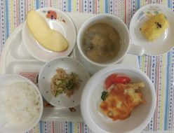 今日も発表会の練習、みんな頑張っていましたね。給食は、マカロニグラタンでした。みんなたくさん食べてくれました♬おやつは、スイートポテトでした。