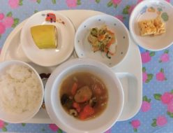 今日は☀でしたね。発表会はお天気が怪しいそうですね。給食は、鶏のさっぱり煮でした。鶏や、玉ねぎ、人参、ピーマンなどを醬油や酢で煮込みました。
