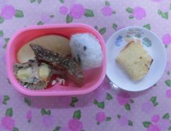 今日は、予行練習でしたね。衣装を着たかわいい姿が見れました!給食は、魚のカレー風味焼きでした。カレー粉や醬油、酒などに漬け込み焼き上げました!おやつは、お麩のラスクでした。