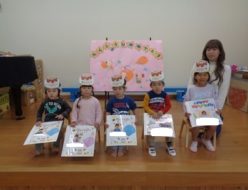 今日は、11月生まれのお友達と、10月のお誕生会に参加できなかったお友達の誕生会を行いました。元気よく入場してきた子ども達・・・。きりん組の保護者の方にも来園して頂きました。そして今月は、きりん組さんの出し物で「つばめ」の曲に合わせて踊りを披露してくれました。