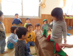 今日は、室内で芋ほり🍠遊びをしました。芋のつるを一生懸命に引っ張る子ども達でしたが、なかなか抜けず苦戦していました😣芋が出てくると嬉しそうな表情をする子どもや、芋🍠が出てくる瞬間を まじまじと見る👀子ども達の姿が見られました。