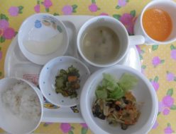 台風もすぎましたね。大きな被害がなく良かったです!給食は、鮭のホイル焼きでした。玉ねぎ、人参、キノコを入れましたよ!おやつは、キャロットゼリーでした。
