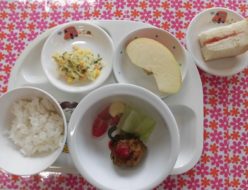 今日も暑くなりましたね。給食は、鮭のチーズピカタでした。卵と一緒に粉チーズを入れて焼き上げました!果物には、今年初の梨を提供しました❣❣もう8月も明日で終わりますね。早いですね。