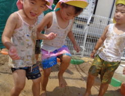 今日は、泥んこ遊びをしました。泥の感触に「すごーい❣❣」「泥のお風呂だ~」と喜び、足をバタバタさせて喜ぶ子ども達でした🤭顔も身体も泥だらけで、はしゃぎすぎて「先生~💦うえ~・・。泥入ったよ・・・。