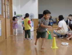 今日は、保育参加最終日で、「やっと、来てくれた~」と、今まで待っていた子ども達は大喜びで活動に臨んでいました。きりん組は、リトミック、ひらがな遊びでリトミックは保護者の方と一緒に行い、体を動かす事を楽しんでいました。