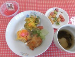 今日はとても良い天気になりましたね。ひな祭り会はとても楽しそうに参加していましたね😊給食はちらし寿司でした!プリンカップで型抜きして、錦糸卵と花型の人参、桜でんぶを飾りつけました。とてもかわいく仕上がりました❣❣来週は誕生日会、お別れ会ですね。