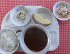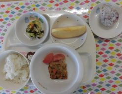 今日は、日差しが出ていて暖かく感じましたね。給食は、ちぎりじゃがでした。さつま揚げのうま味が出ていておいしく仕上がりました❣❣子ども達からも「給食おいしかった!」と声をかけてくれました♬おやつは、黄粉蒸しパンでした。