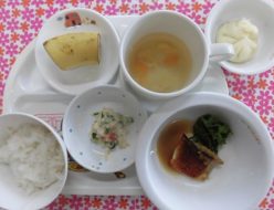 今日は少し寒さもやわらぎましたね。給食は、魚の味噌煮でした。付け合わせには小松菜をそえました。小松菜もカルシウムが多く含まれていますよ❣おやつは、肉まんでした。今回は生地を発酵させて、ふっくらの肉まんを作りました。