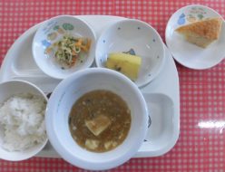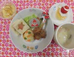 今朝はとっても寒かったですね。子ども達はとても元気に遊んでいましたね。給食は、麻婆豆腐でした。おかわりしてくれる子もたくさんいました。おやつは、いちごケーキでした。生地にいちごジャムを入れて焼き上げました。今年もあと一日ですね。