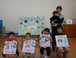 今日は、11月生まれのお誕生会がありました。10月のお誕生会に参加出来なかったお友達も参加しました。きりん組🦒、くま組🐻のお友達は、インタビューを受けてドキドキしている様子でしたがとっても上手に答えていました。
