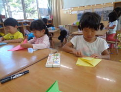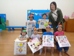 町の文化祭に向けて、みんなで「とんぼ」を作りました。好きな色のペンを使って色を付けたり、毛糸をぐるぐる巻き付けたりとっても集中して取り組んでいました。毛糸を巻き付けるのに苦戦している子どもも結構いましたが、かわいいとんぼを作る事が出来ました。