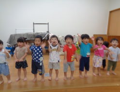 暑い日が続きますね☀プール遊びを楽しんだ後は、身体測定をして、明日の誕生会に向けて出し物の練習をしました❣ランチルームのステージで練習しましたが、恥ずかしがる様子もなく、笑顔で参加してくれました。