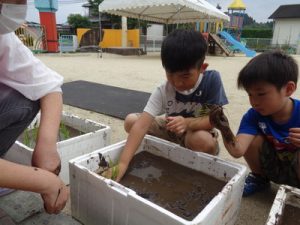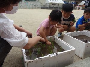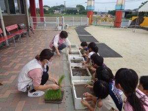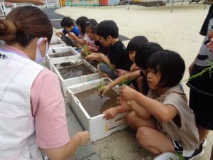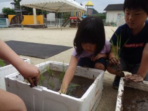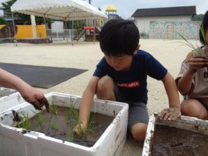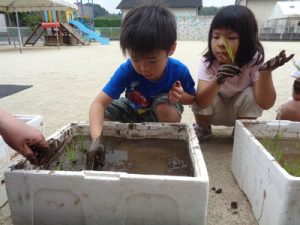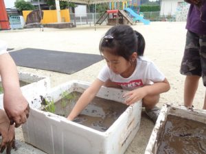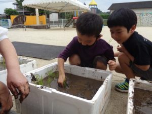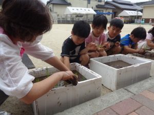 手の汚れと、泥のヌルヌルと闘いながらの植え付けになりました。