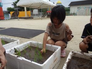 指を3本使って苗を持ち、ギューッと埋め込むのですが これまた大変❢