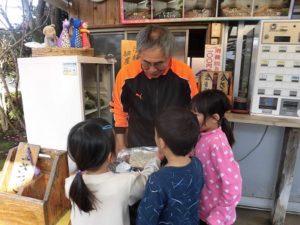 うさぎ組代表が感謝の気持ちを伝えました。また、一泊キャンプの時お世話になった汽車ぽっぽの温泉には、きりん組の代表が行きました。